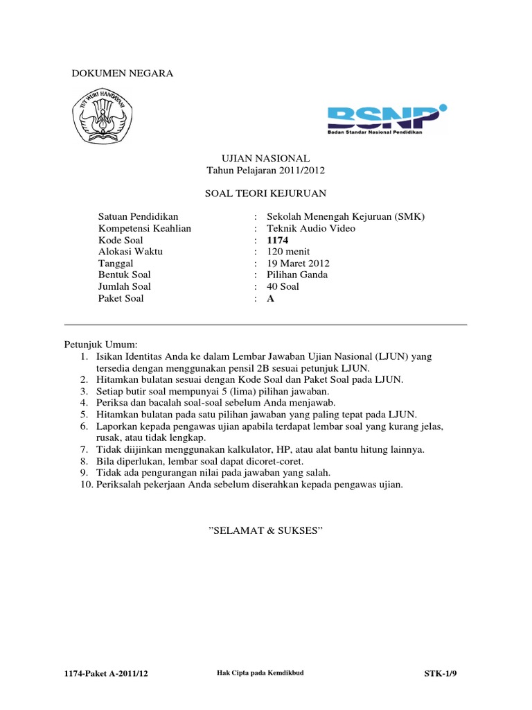 Soal Un Teori Produktif Smk Teknik Audio Video from reader020.staticloud.net Pilihan ganda jumlah soal : Teknik audio video kode : 120 menit 08 00 s d 10 00. Feb 17, 2021 · soal praktik kejuruan, lembar penilaian, kriteria/ rubrik ujian praktik kejuruan. 120 menit 0800 sd 1000 bentuk soal. 40 soal paket soal : Feb 25, 2015 · soal un teori produktif smk teknik audio video 1. Dec 08, 2016 · baca juga :